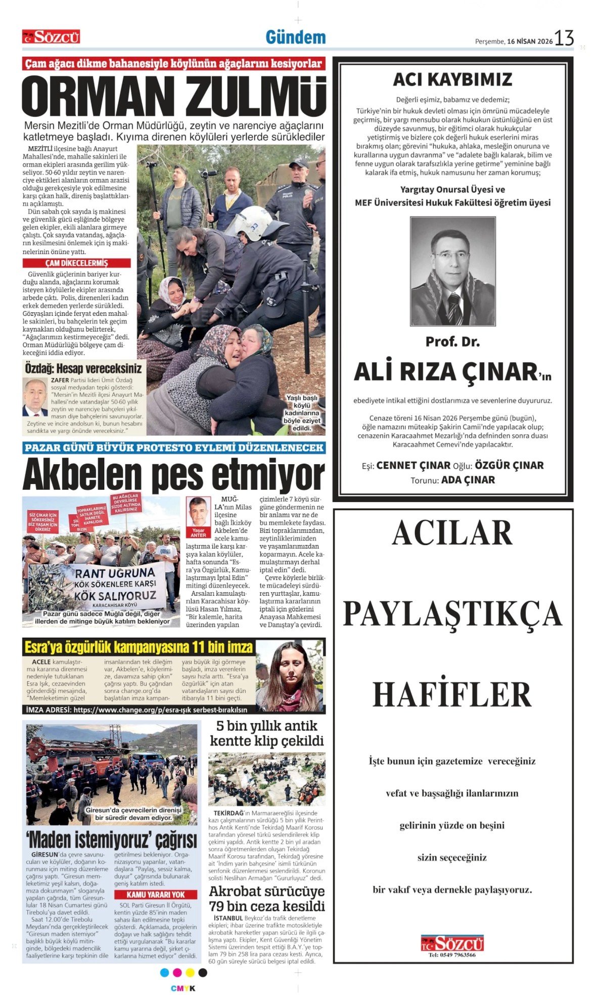 Sözcü Vefat İlanları – 16 Nisan 2026