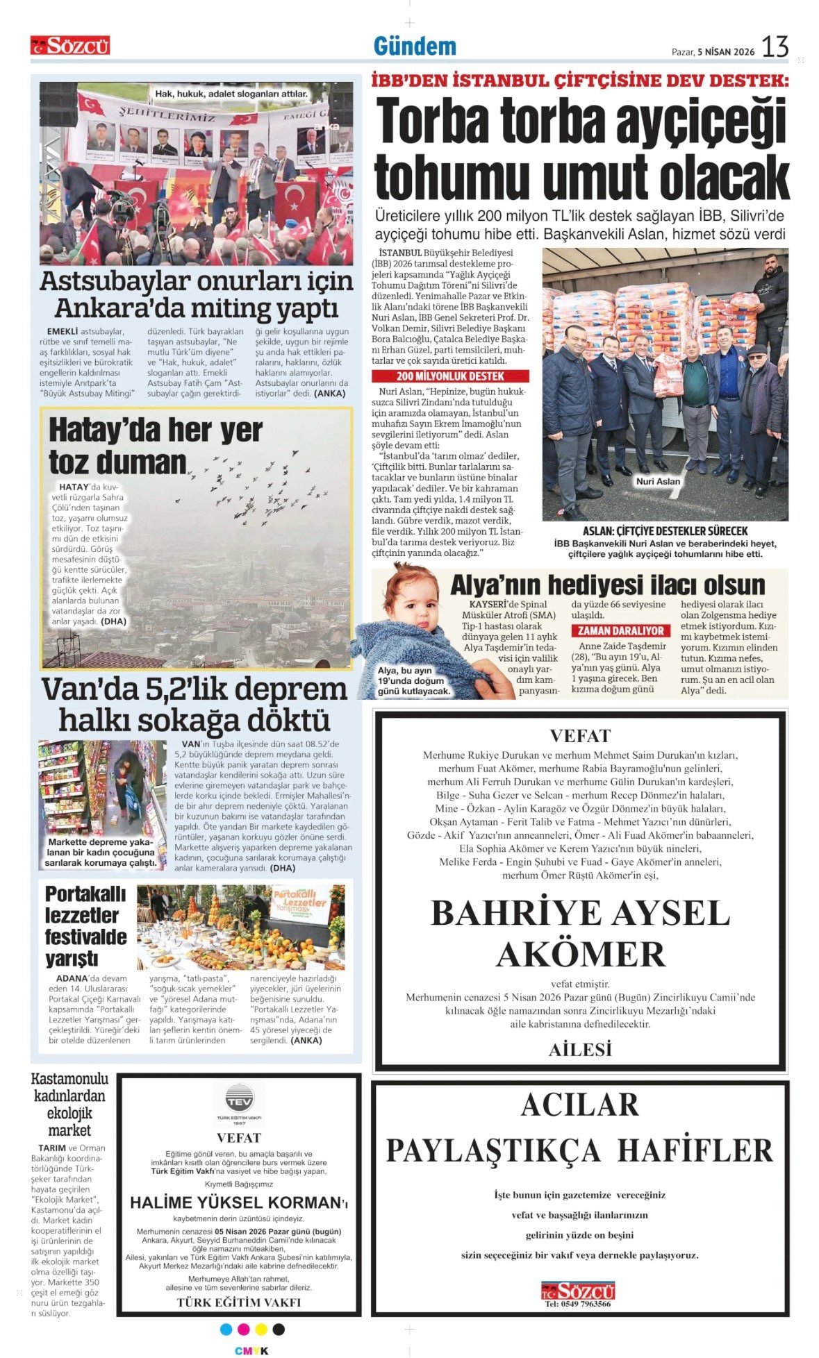 5 Nisan 2026 Sözcü Gazetesi vefat, başsağlığı ve anma ilanları. İlan vermek için 0533 504 01 01 numaralı hattı arayın.