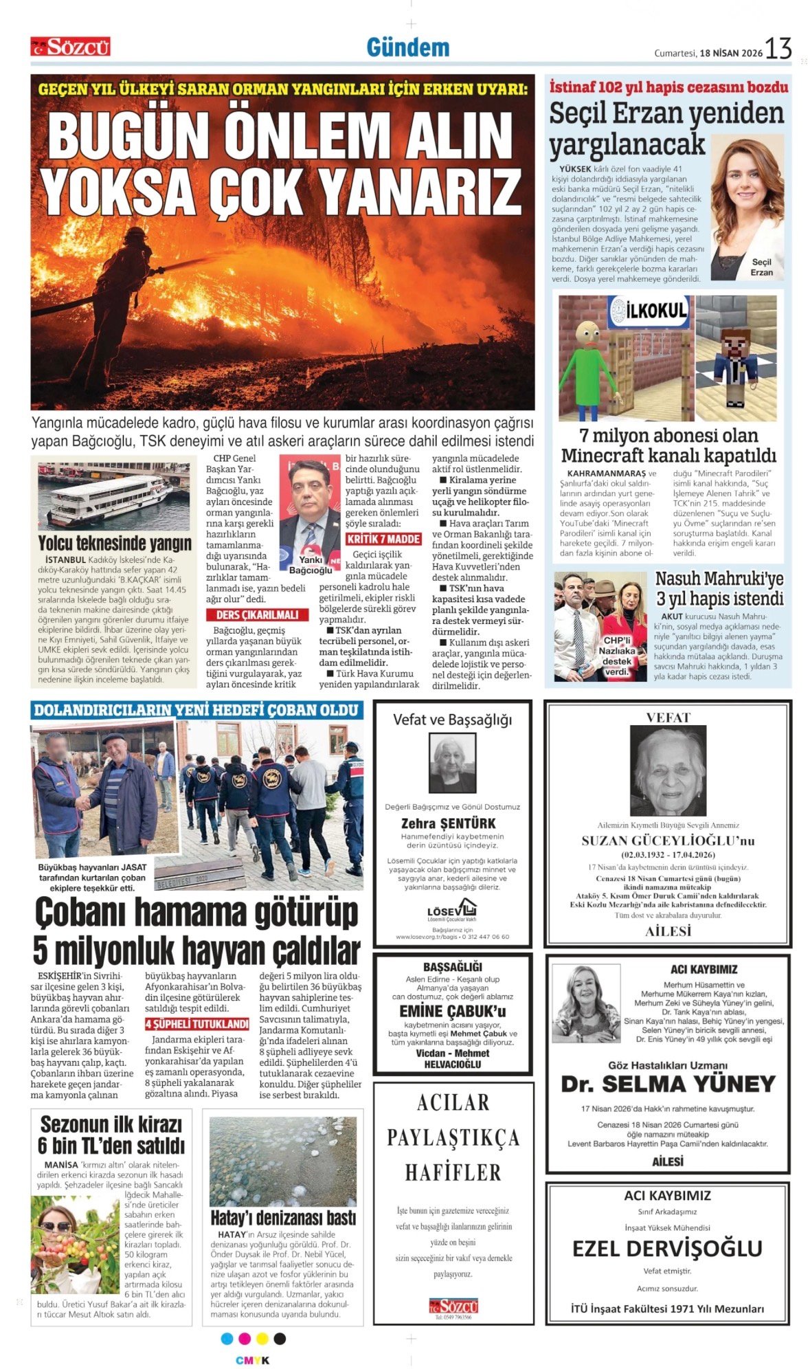 Sözcü Vefat İlanları – 18 Nisan 2026