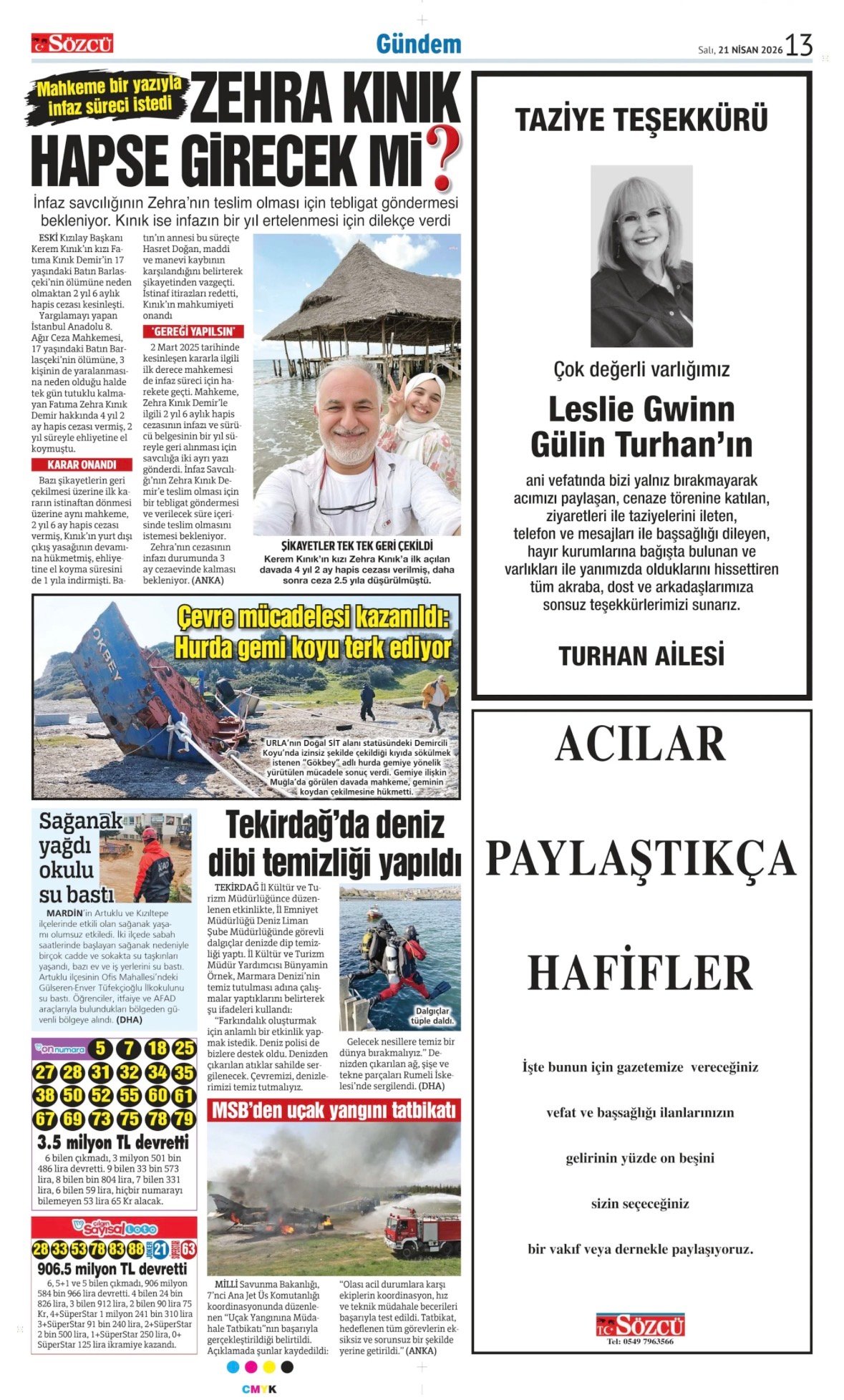 21 Nisan 2026 tarihli Sözcü Gazetesi vefat, başsağlığı ve anma ilanları. İstanbul, Ankara, İzmir ve Adana baskılarında yer alan ilanlar yayınlanmaktadır.