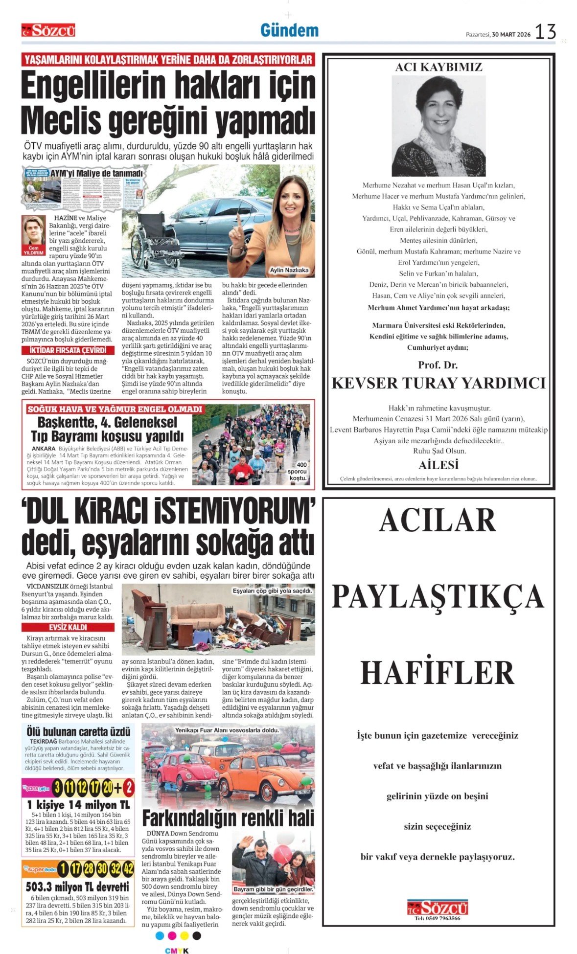 30 Mart 2026 Sözcü Gazetesi vefat, başsağlığı ve anma ilanları. İlan vermek için 0533 504 01 01 numaralı hattı arayın.