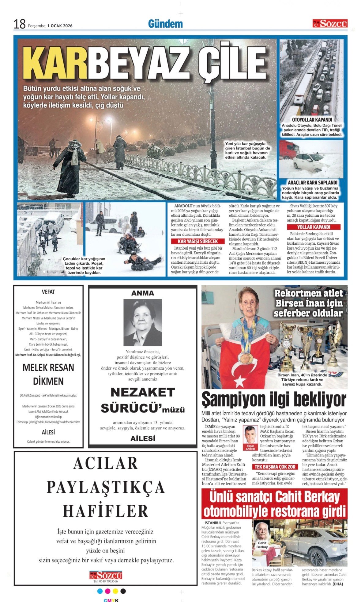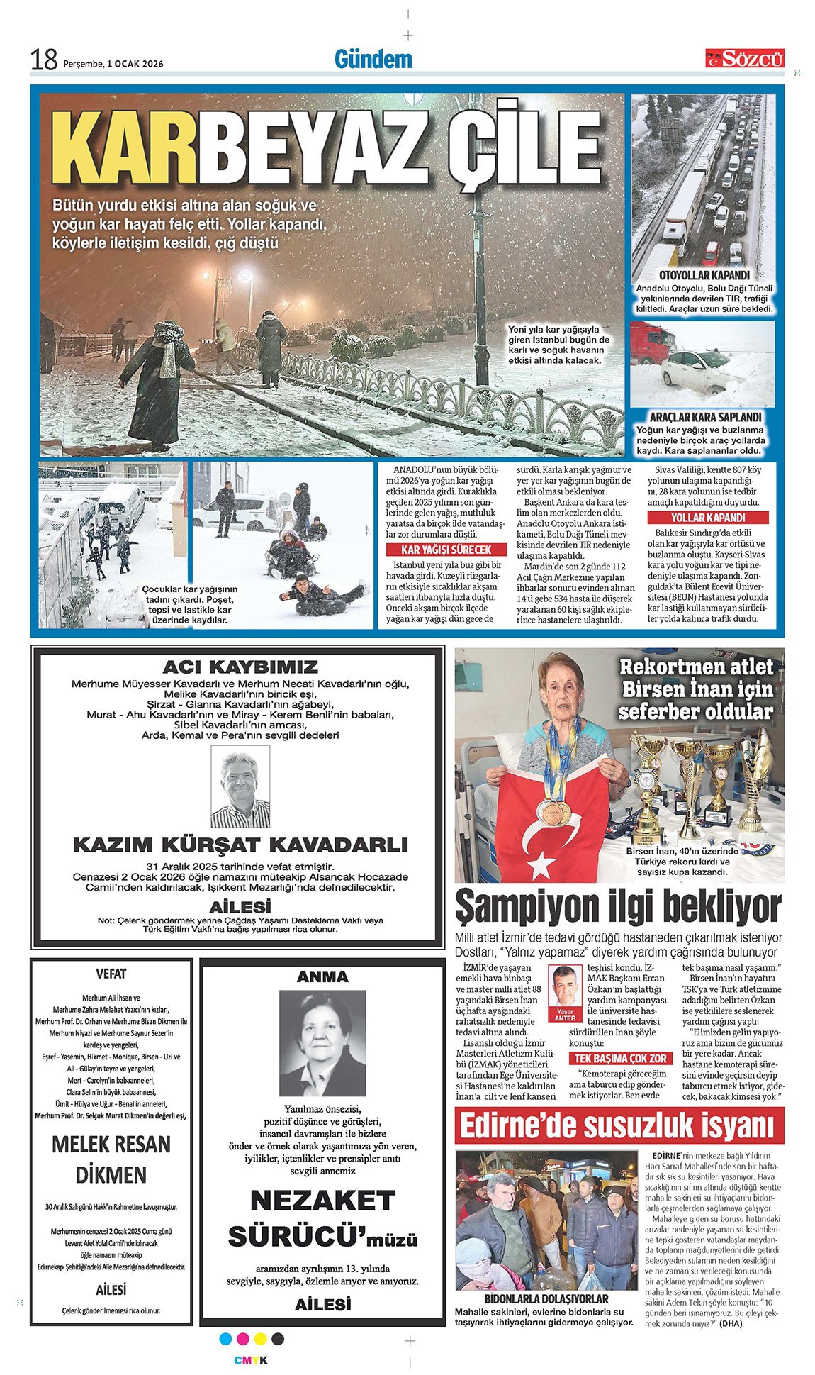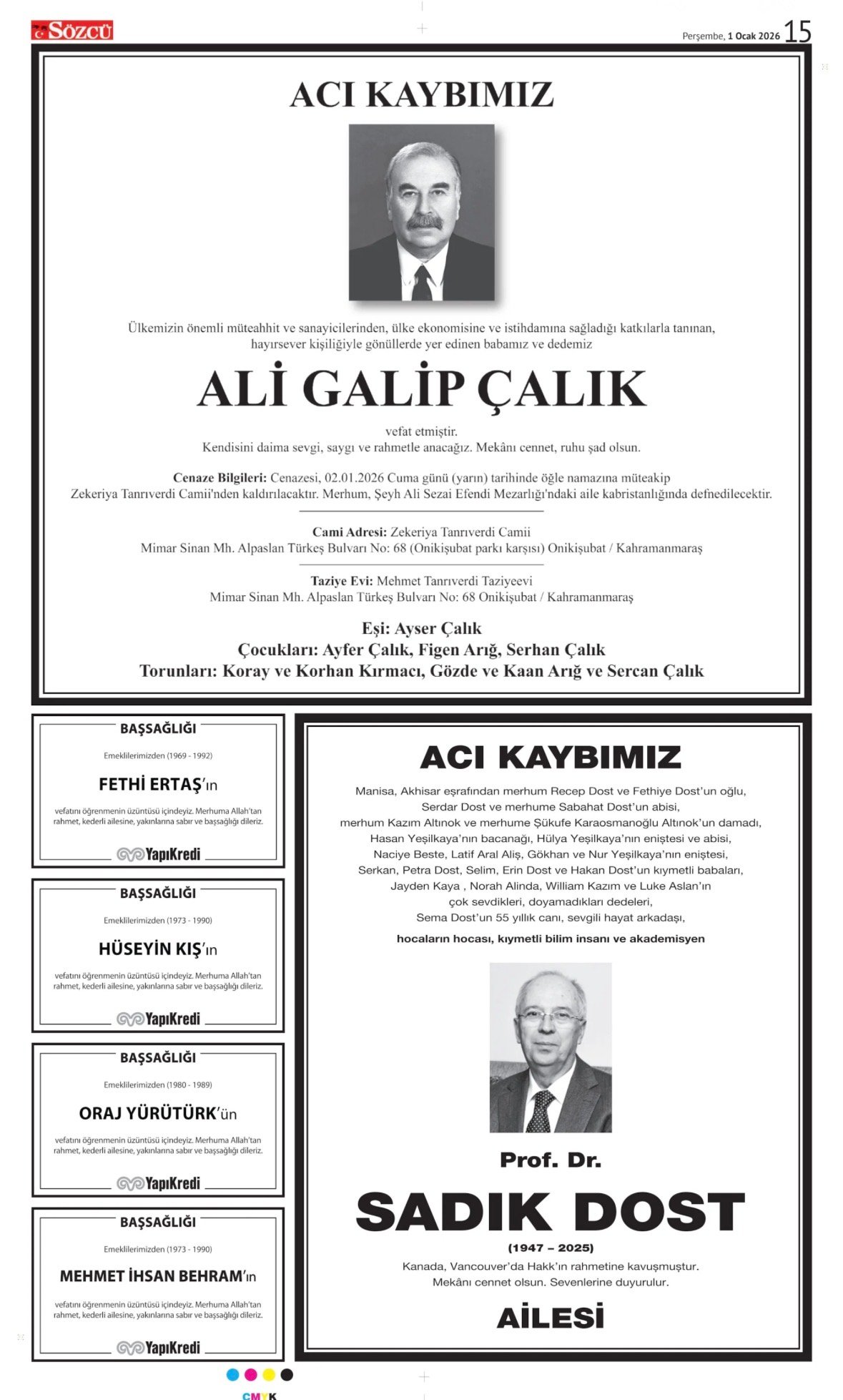 Sözcü Bugünkü Vefat İlan- Başsağlığı İlanı- Anma İlanları ve Arşiv Sayfalar. 1.1.2026