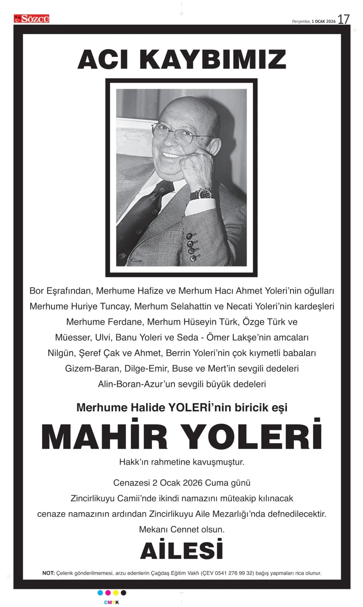 - Sözcü Vefat İlan Servisi- Vefat İlan- Başsağlığı İlanı- Anma İlanı- Sözcü İlan Servisi İletişim: 0212 230 60 00– 0533 504 01 01 (7/24) bize ulaşabilirsiniz.