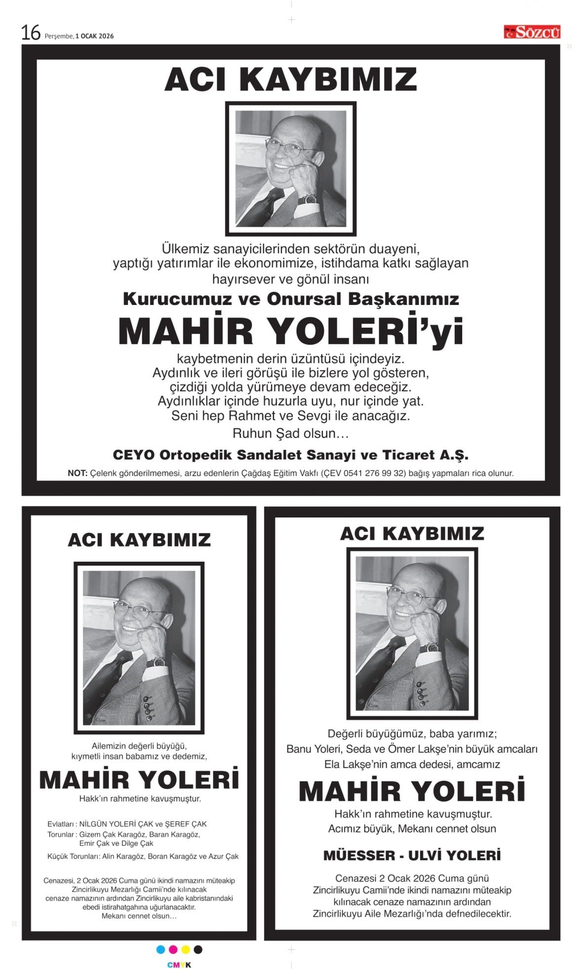 - Sözcü İlan İstanbul- Ankara- Ege- Akdeniz- Adana Her Bölgeye Vefat, Başsağlığı, Anma, Teşekkür İlanı verebilirsiniz.