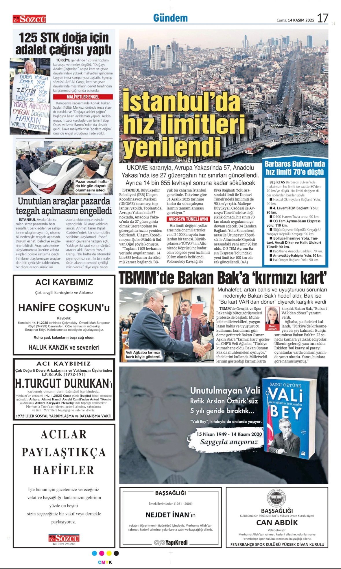 Sözcü Bugünkü Vefat İlan- Başsağlığı İlanı- Anma İlanları ve Arşiv Sayfalar. 14.11.2025