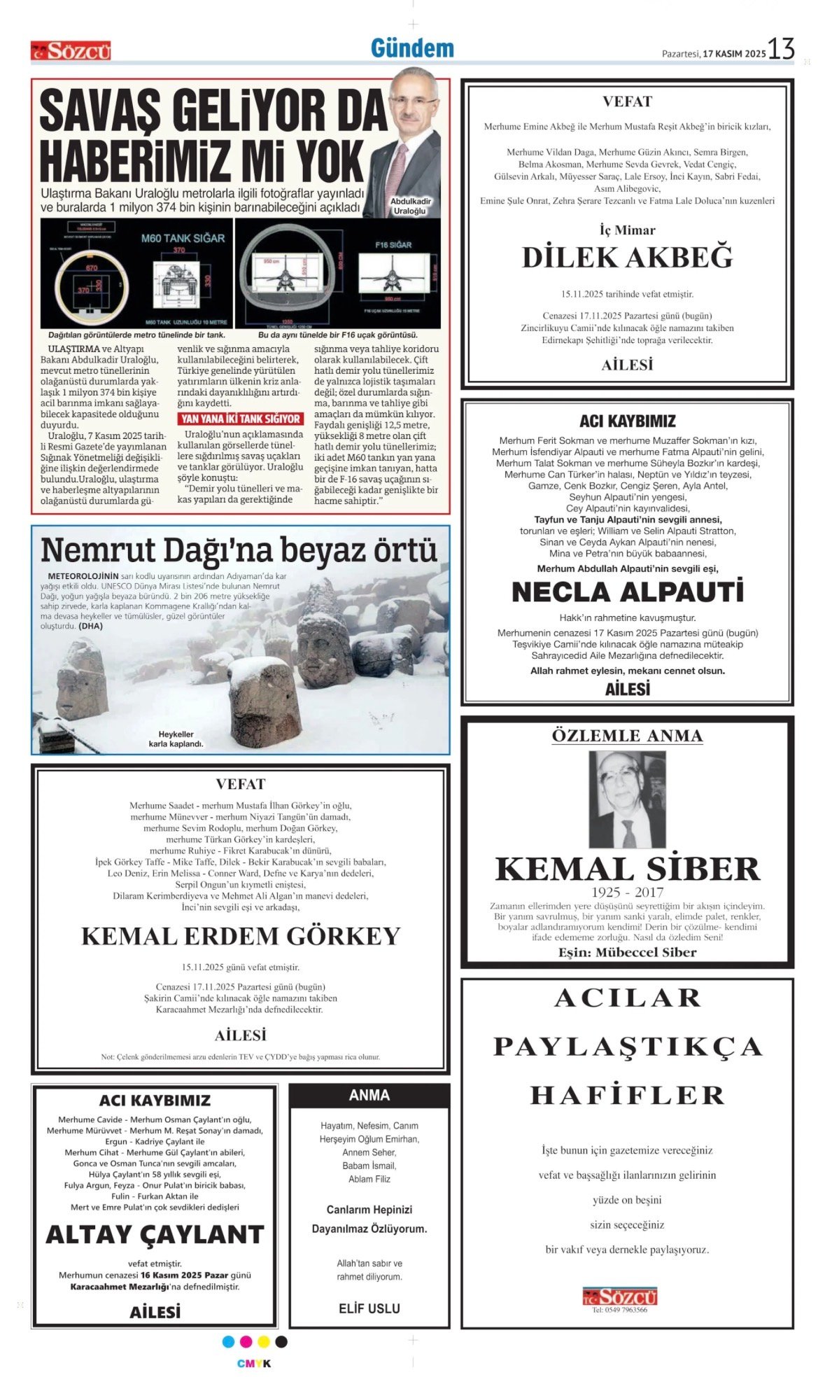 Sözcü Bugünkü Vefat İlan- Başsağlığı İlanı- Anma İlanları ve Arşiv Sayfalar. 17.11.2025