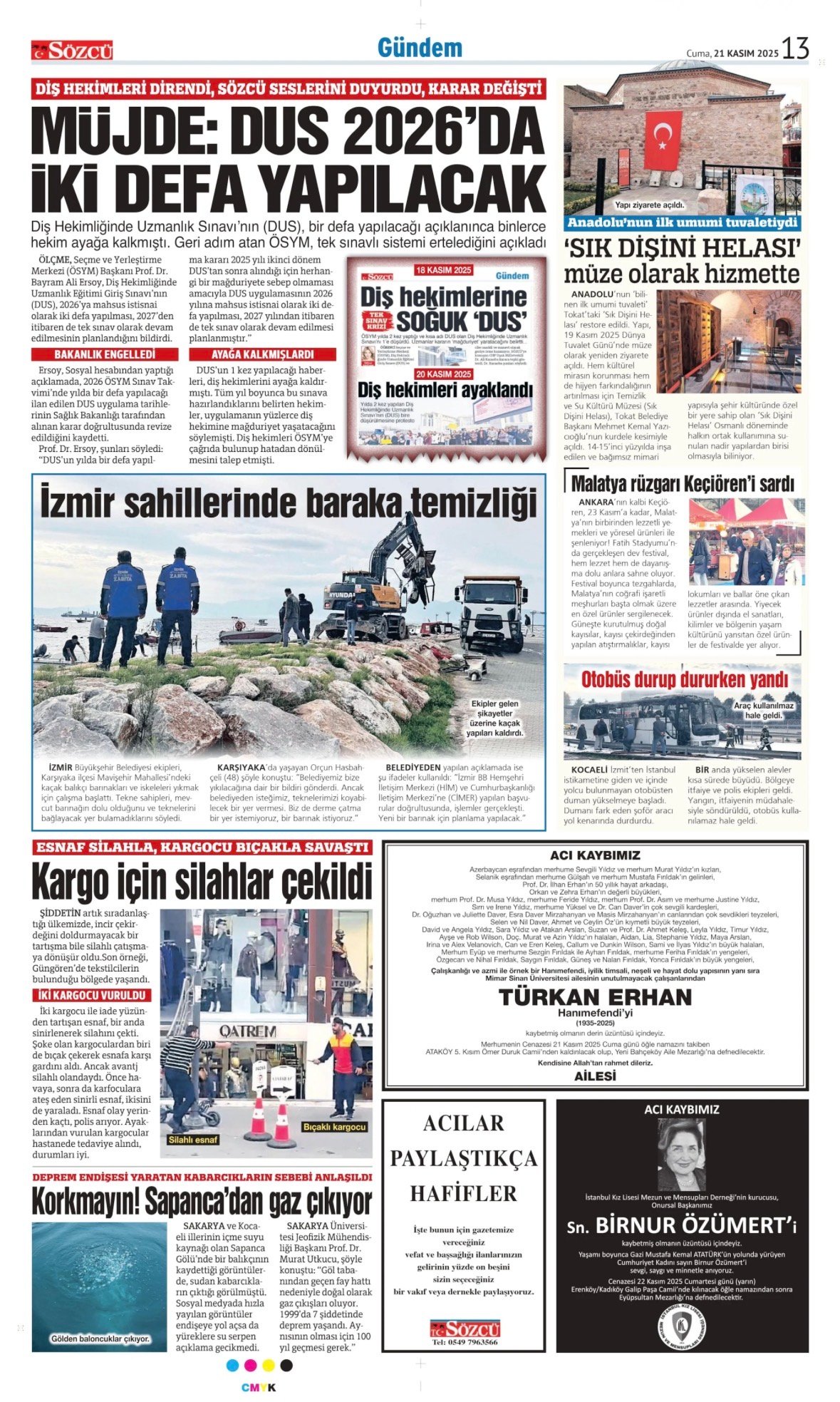 Sözcü Bugünkü Vefat İlan- Başsağlığı İlanı- Anma İlanları ve Arşiv Sayfalar. 21.11.2025