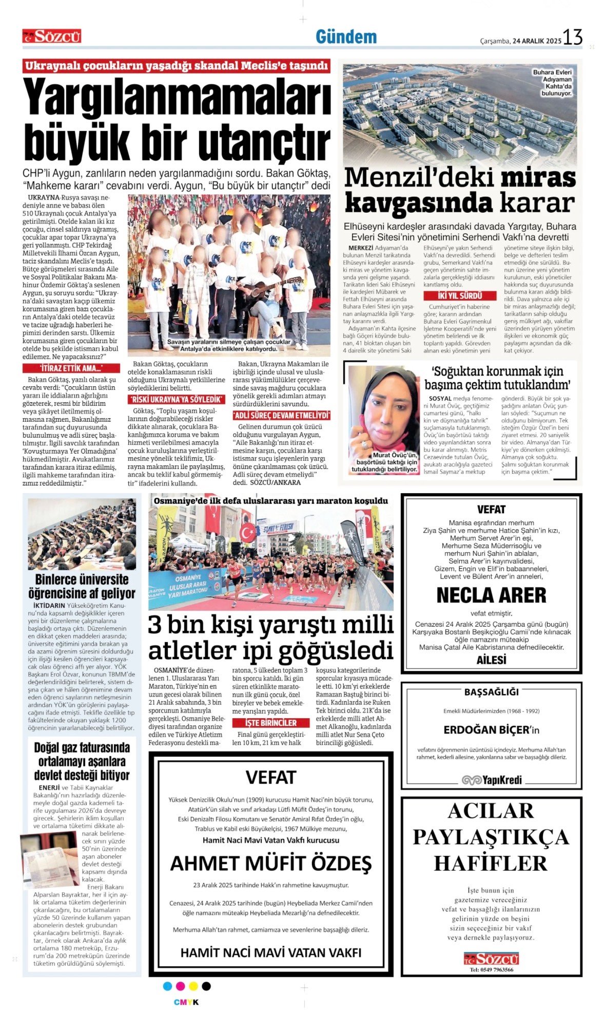 Sözcü Bugünkü Vefat İlan- Başsağlığı İlanı- Anma İlanları ve Arşiv Sayfalar. 24.12.2025