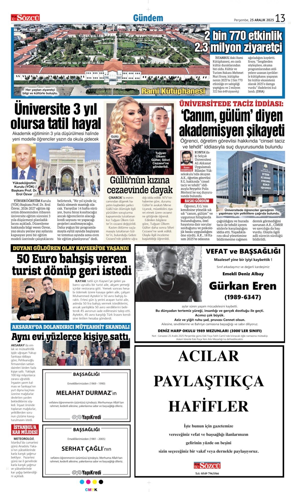- Sözcü İlan İstanbul- Ankara- Ege- Akdeniz- Adana Her Bölgeye Vefat, Başsağlığı, Anma, Teşekkür İlanı verebilirsiniz.