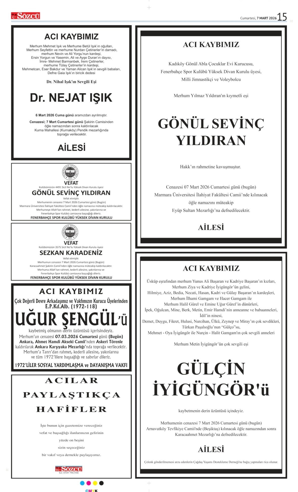 Sözcü Bugünkü Vefat İlan- Başsağlığı İlanı- Anma İlanları ve Arşiv Sayfalar. 7.3.2026