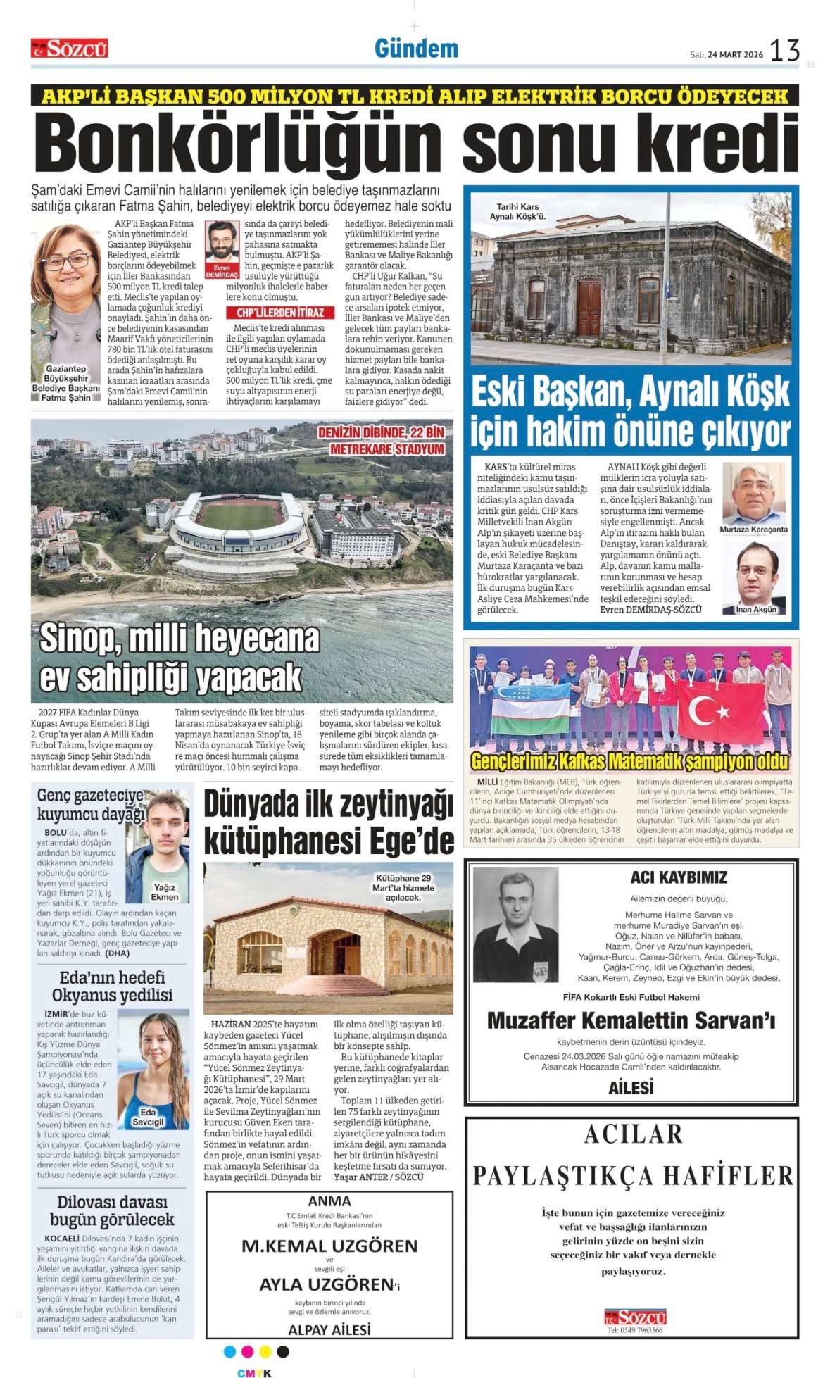 24 Mart 2026 Sözcü Gazetesi vefat, başsağlığı ve anma ilanları. İlan vermek için 0533 504 01 01 numaralı hattı arayın.
