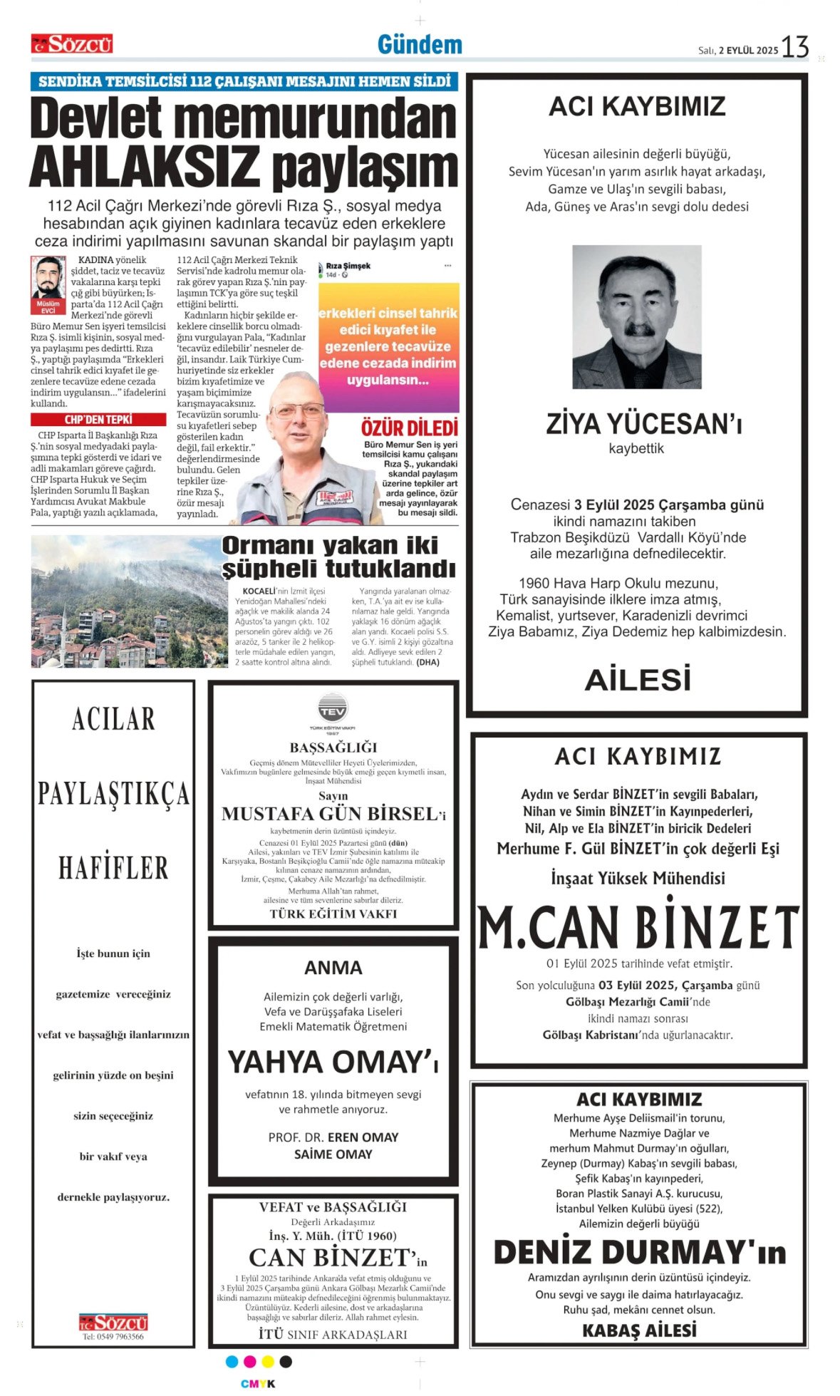 Sözcü Bugünkü Vefat İlanlar 2.9.2025;