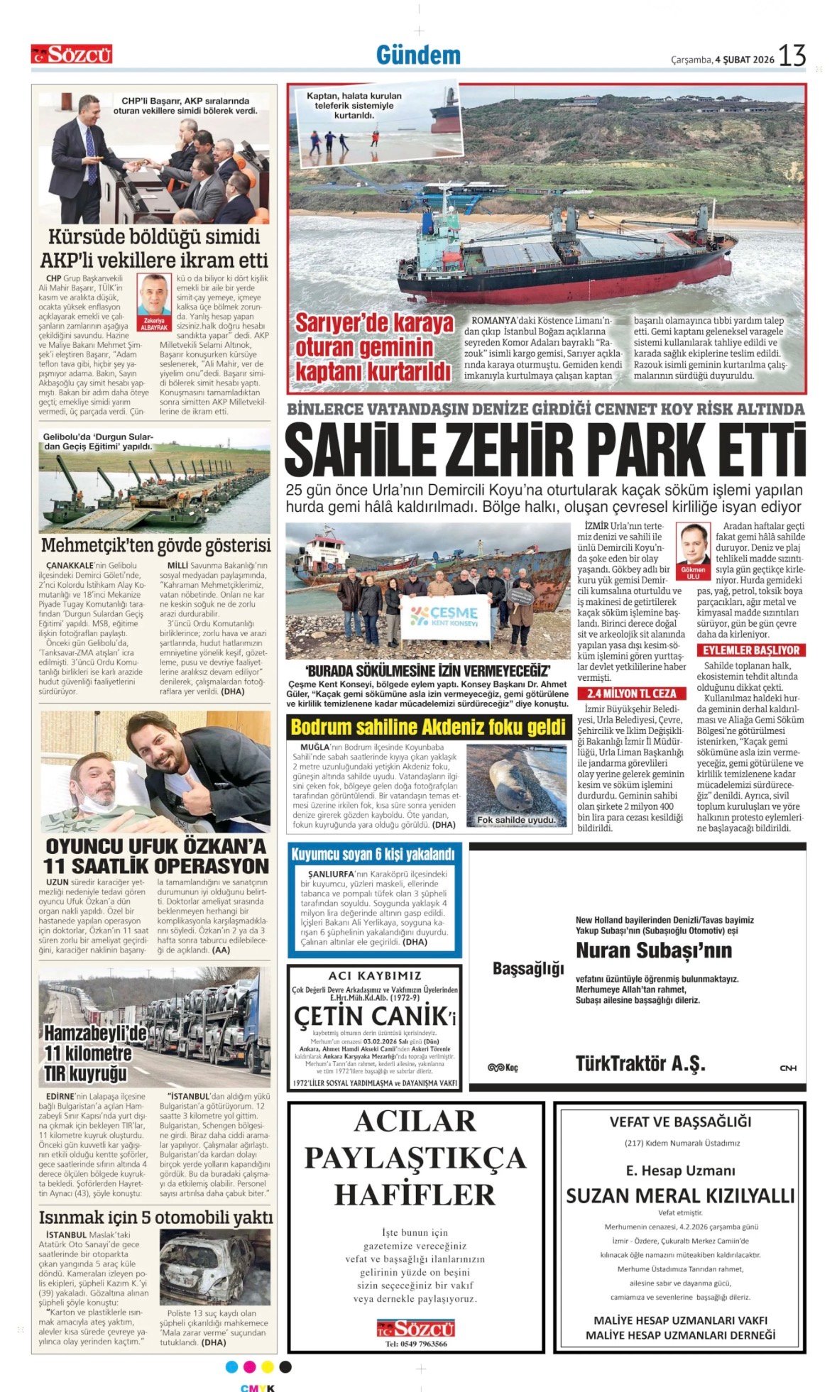 Sözcü Bugünkü Vefat İlan- Başsağlığı İlanı- Anma İlanları ve Arşiv Sayfalar. 10.2.2026