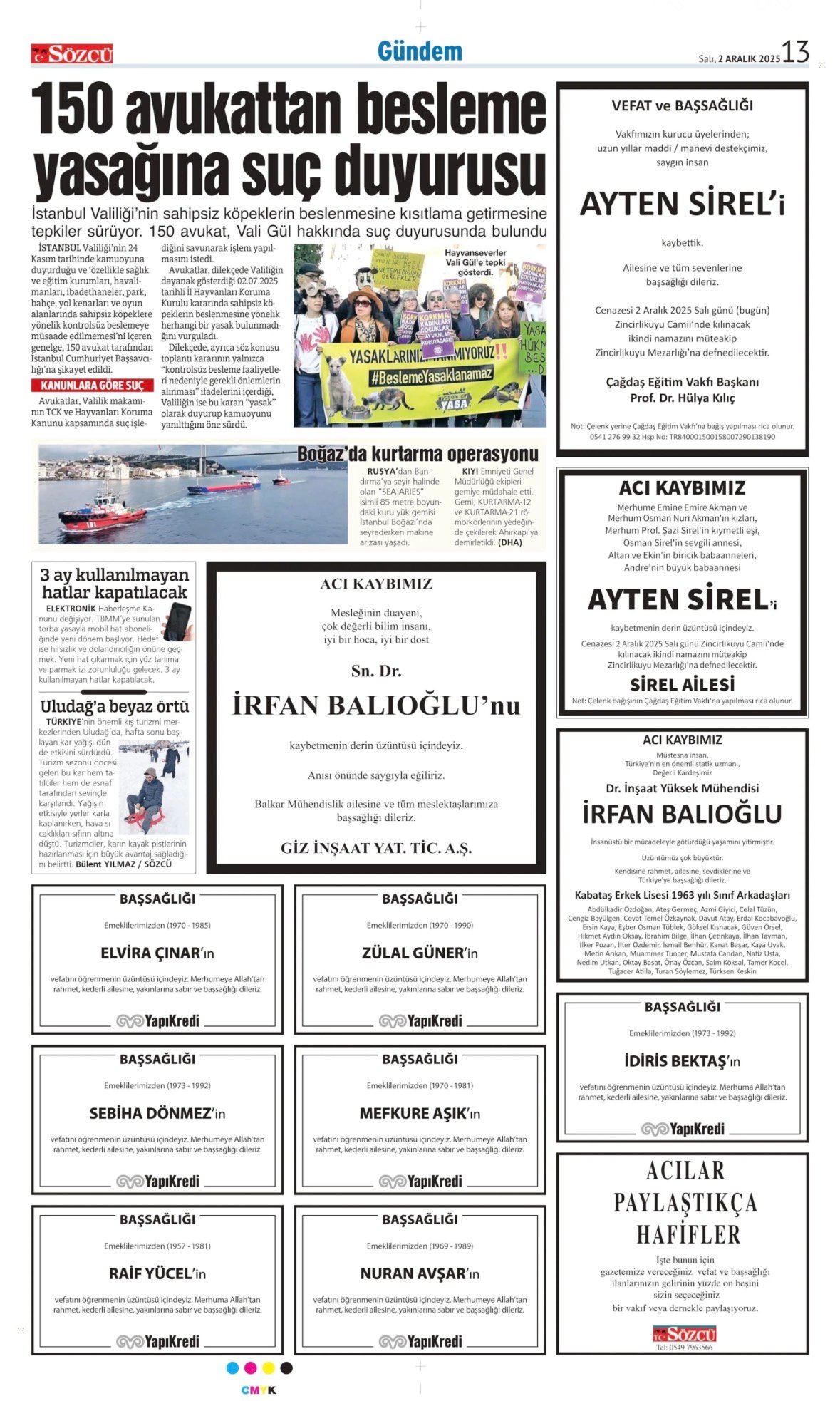 Sözcü Bugünkü Vefat İlan- Başsağlığı İlanı- Anma İlanları ve Arşiv Sayfalar. 30.12.2025