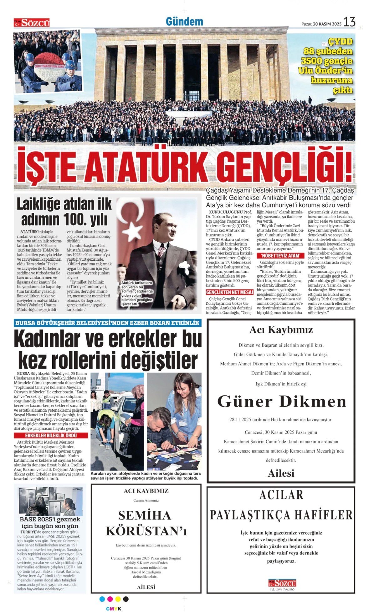 Sözcü Bugünkü Vefat İlan- Başsağlığı İlanı- Anma İlanları ve Arşiv Sayfalar. 29.11.2025